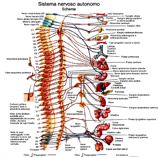 colonna vertebrale e quindi agli organi e alle ghiandole più